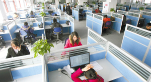 數(shù)百個人發(fā)出不同的聲音,使得整個房間都浸在一個音頻的嘈雜環(huán)境里。每一個客服代表都在說話,各種各樣的問題,他們都會在電腦上找到專業(yè)的解答。電話太多,客服與客服之間,幾乎沒有交頭接耳的討論和接送文件的交流。
