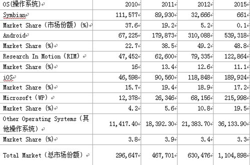 Android操作系統(tǒng)2012年底占智能機(jī)50%份額