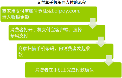 、 支付成本低。不同于不斷上漲的刷卡成本,支付寶手機(jī)條碼支付只需一臺(tái)可上網(wǎng)筆記本以及一只支付寶免費(fèi)提供的掃描槍?zhuān)ɑ蛞徊靠缮暇W(wǎng)的智能手機(jī))即可完成交易。