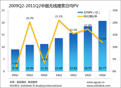 2011年第2季度中國無線搜索日均搜索量達(dá)5.58億