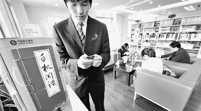 2010年4月16日下午,國內(nèi)首個G3閱覽室在杭州市下城區(qū)圖書館內(nèi)建成并免費開放,實現(xiàn)了移動信息技術(shù)與公共圖書館的有機結(jié)合。圖為讀者正在G3閱覽室里通過G3手機閱讀器免費閱讀。