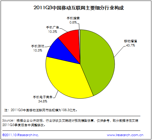2011Q3中國移動(dòng)互聯(lián)網(wǎng)市場規(guī)模達(dá)108.3億元