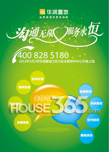 2012年1月1日,伴隨著新年鐘聲,華潤置地客戶服務(wù)熱線400-828-5180正式登陸常州市,這是我市人居環(huán)境不斷改善的一大利好,也是開發(fā)商華潤置地尊重人居環(huán)境發(fā)展、重視客戶感受,踐行“品質(zhì)給城市更多改變”的品牌理念的一大舉措。