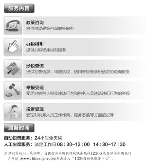 為及時(shí)響應(yīng)納稅人的要求維護(hù)納稅人的權(quán)益,海南省國(guó)家稅務(wù)局于2003年開(kāi)通12366納稅服務(wù)熱線,2008年5月12日正式成立12366納稅服務(wù)呼叫中心,在省國(guó)稅局設(shè)立熱線坐席,專(zhuān)門(mén)為納稅人解答涉稅難題。