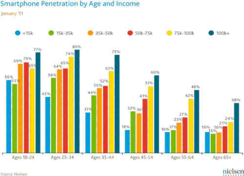 尼爾森:年齡和收入決定智能手機普及率