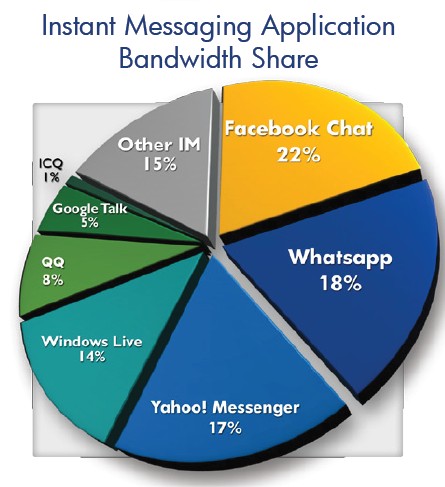 Allot發(fā)布的報告對移動通信網絡上的主流應用流量進行了統(tǒng)計,下面是關于VOIP和即時通信流量的發(fā)展情況: