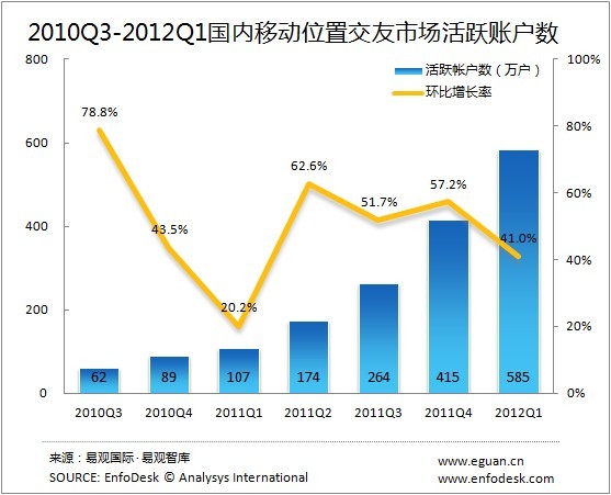 易觀:2012Q1國內(nèi)移動位置交友應用規(guī)模達4338萬戶
