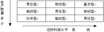 需要指出的是這5種程度的客戶關(guān)系類型并不是一個(gè)簡單的從優(yōu)到劣的順序,企業(yè)所能采用的客戶關(guān)系的類型一般是由它的產(chǎn)品以及客戶決定的, 比如寶潔公司它的洗發(fā)水、洗衣粉的客戶之間是一種被動性的關(guān)系:寶潔設(shè)立客戶抱怨處理機(jī)構(gòu),處理客戶投訴,改進(jìn)產(chǎn)品;但是寶潔和沃爾瑪特之間卻可以建立互惠互利的伙伴性關(guān)系?铺乩崭鶕(jù)企業(yè)的客戶數(shù)量以及企業(yè)產(chǎn)品的邊際利潤水平提供了一個(gè)表格幫助企業(yè)選擇自己和是的客戶關(guān)系類型。