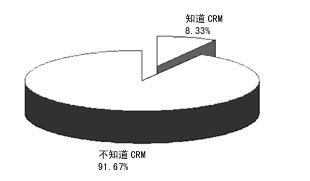 本次問卷調(diào)查共有2461個(gè)有效樣本,其中知道CRM的有220份,占8.33%,不知道的有2421份,占91.67%。這說明,從國外引入到現(xiàn)在,CRM在我國還遠(yuǎn)未普及。