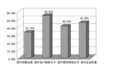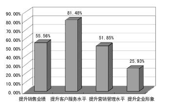 從結(jié)果上看,企業(yè)實(shí)施的最大動(dòng)力是“提升客戶服務(wù)水平”。這說明,企業(yè)對CRM的理解還僅僅停留在初級階段,尚沒有充分認(rèn)識(shí)到對企業(yè)提升銷售業(yè)績、營銷管理水平有著重要作用。這其實(shí)也反應(yīng)了我國企業(yè)目前的管理水平。
