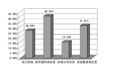 在用戶如何實(shí)施CRM系統(tǒng)的調(diào)查中,已應(yīng)用CRM的單位一般都是由自己或軟件提供商負(fù)責(zé),而沒用CRM的企業(yè)則大多期望能由軟件提供商負(fù)責(zé)。這說明,用戶實(shí)施CRM的主體意識(shí)還不夠強(qiáng)。