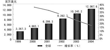 IDC預(yù)測(cè),2004年CRM市場(chǎng)規(guī)模將達(dá)到121億美元,復(fù)合平均增長(zhǎng)率為29.9%。而同期全球IT市場(chǎng)的復(fù)合平均年增長(zhǎng)率為12%。