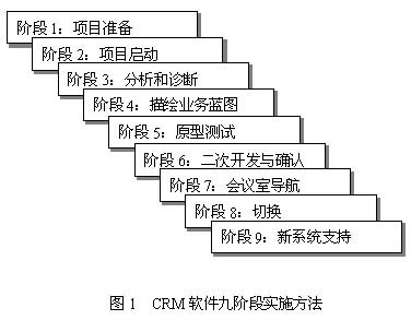 CRM軟件產(chǎn)品本質(zhì)上是面向企業(yè)前臺應(yīng)用的管理信息系統(tǒng)。其本身就蘊(yùn)含了CRM的管理思想和先進(jìn)的信息技術(shù)。與ERP系統(tǒng)的實(shí)施類似,CRM軟件系統(tǒng)的實(shí)施過程遵循了項目管理的科學(xué)方法。