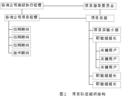 這支隊伍既有企業(yè)高級管理層所組成的指導(dǎo)委員會和咨詢公司人員,也有來自信息部門的技術(shù)人員和相應(yīng)職能部門的熟悉企業(yè)流程的業(yè)務(wù)人員所組成的實(shí)施小組和職能小組。項目隊伍組織結(jié)構(gòu)如圖2所示。