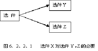 必要關(guān)系發(fā)生在選件與選件之間,即選擇一個就必須選擇另一個或多個。比如,客戶首先選擇了某種CPU后,就必須選擇某種特定的電腦主板以及內(nèi)存。其關(guān)系示圖如6、2、2、1所示。