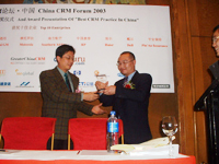 中國(guó)最佳CRM實(shí)施的授獎(jiǎng)儀式已在2003年CRM論壇·中國(guó)上如期舉行,共有300余人參加了本次論壇(北京,上海和深圳會(huì)場(chǎng))。