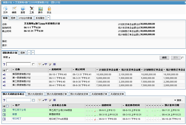 在銷售管理過程中,企業(yè)的高層決策基本上憑借管理人員的直覺下達(dá)指示,經(jīng)常是難以達(dá)到量化的過程管理,無法有效控制銷售進(jìn)展,成交率低下。對此,VamCRM銷售儀表盤針對各銷售階段的數(shù)據(jù)進(jìn)行圖表顯示和量化標(biāo)識,企業(yè)用戶可以非常清楚地知道自己正在跟進(jìn)的客戶都分布在什么階段?哪個階段的客戶需要增加?哪個階段的客戶有待發(fā)展?……銷售儀表盤中包括:自定義時間段,監(jiān)控銷售進(jìn)展情況的合約儀表盤;自定義時間段,進(jìn)行銷售預(yù)測的合約預(yù)測儀表盤;自定義時間段,監(jiān)控團(tuán)隊銷售進(jìn)展情況的團(tuán)隊儀表盤;自定義時間段,進(jìn)行團(tuán)隊銷售預(yù)測的團(tuán)隊預(yù)測儀表盤;自定義時間段,考察線索挖掘情況的客戶線索儀表盤等。此外,在銷售計劃中集成銷售數(shù)據(jù)的統(tǒng)計與分析,可以將銷售計劃中對應(yīng)的團(tuán)隊或個人的計劃、預(yù)計和完成的銷售金額進(jìn)行全面統(tǒng)計,將各階段的銷售業(yè)績進(jìn)行量化比較分析。相應(yīng)的公司高層也能參與銷售跟蹤的監(jiān)管和指導(dǎo),在過程管理中及時發(fā)現(xiàn)問題,并給予解決。
