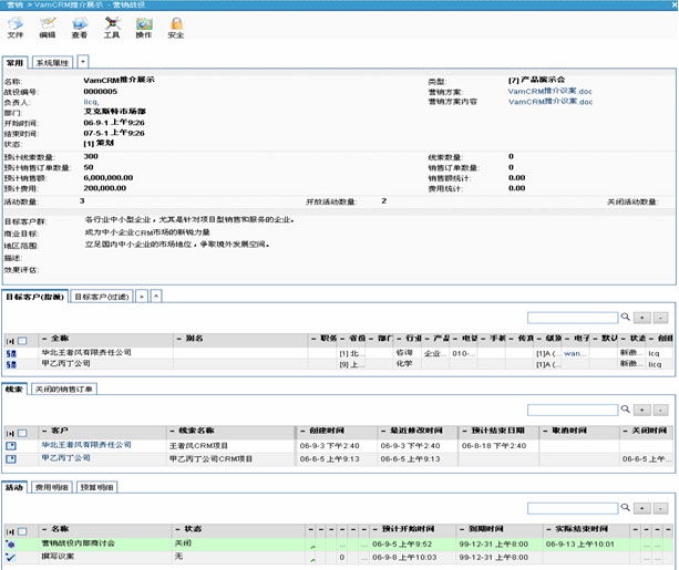 VamCRM營銷自動化提供了目標(biāo)明確、計劃清晰、結(jié)果可度量的營銷戰(zhàn)役管理。實(shí)現(xiàn)以營銷戰(zhàn)役為樞紐,市場細(xì)分,確定目標(biāo)市場和客戶群,制定客戶營銷策略和宣傳方式,專注將目標(biāo)客戶轉(zhuǎn)化為實(shí)際的客戶,能夠讓企業(yè)達(dá)到事半功倍的營銷效果。營銷戰(zhàn)役中集成豐富的市場活動類型,精細(xì)化管理營銷活動,記錄所有在營銷戰(zhàn)役過程中相關(guān)的歷史活動、文檔、備忘錄等數(shù)據(jù),能夠?qū)撛诳蛻魧?shí)現(xiàn)一對一營銷,可根據(jù)客戶的特定需求進(jìn)行差異化營銷。