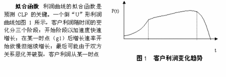 客戶利潤曲線除了倒“U”形外,可能還有各種其它形狀。其它形狀CLP預(yù)測的關(guān)鍵是找到合適的客戶利潤曲線擬合函數(shù)。為此公司需要建立一個客戶利潤曲線擬合函數(shù)庫,庫中存放各種形狀實(shí)際客戶利潤曲線的擬合函數(shù)。當(dāng)客戶歷史利潤曲線不符合倒“U”形變化規(guī)律時,在庫中尋找新的擬合函數(shù)。如庫中沒有現(xiàn)成的滿足要求的擬合函數(shù),則建立新的擬合函數(shù),并加入庫中。擬合函數(shù)確定后,參照倒“U”形CLP的預(yù)測方法和步驟便不難算出當(dāng)前客戶的CLP。當(dāng)前分析型CRM系統(tǒng)具備的數(shù)據(jù)庫技術(shù)、數(shù)據(jù)挖掘技術(shù)、知識發(fā)現(xiàn)技術(shù)等有效的智能工具去識別客戶利潤曲線,進(jìn)而確定擬合法中的各參數(shù),可以容易的計算出CLP。