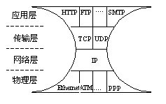 。。IP協(xié)議在多樣的物理介質(zhì)與多樣的應(yīng)用需求之間建立了簡單而統(tǒng)一的映射方法。這樣形成的融合網(wǎng)絡(luò)具有沙漏型的體系結(jié)構(gòu),如圖2所示,可以靈活地進行業(yè)務(wù)的配置和物理網(wǎng)絡(luò)的升級。由于IP技術(shù)在安全性和用戶管理方面的缺陷在三網(wǎng)融合過程當(dāng)中還不構(gòu)成大的障礙,因此基于IP進行三網(wǎng)融合幾乎是必然的選擇。