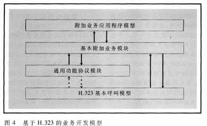 。龋矗担暗囊粋強項是它可以使用多級方式開發(fā)附加業(yè)務;緲I(yè)務由構(gòu)件或原語組成,由基本業(yè)務可開發(fā)更復雜的業(yè)務。復合業(yè)務由兩個或更多個基本業(yè)務組成。應用程序通過API接口使用基本業(yè)務和復合業(yè)務為用戶提供多媒體業(yè)務。H.450附加業(yè)務體系為該類業(yè)務提供了信令方式和標準構(gòu)件模塊。使用相似的方法,H.323將不但能提供基本的電話業(yè)務和附加業(yè)務,而且能夠提供基于IP的增值業(yè)務,如統(tǒng)一消息、呼叫分配、VPN和統(tǒng)一號碼業(yè)務。該業(yè)務開發(fā)模型體現(xiàn)了軟件重用的思想。