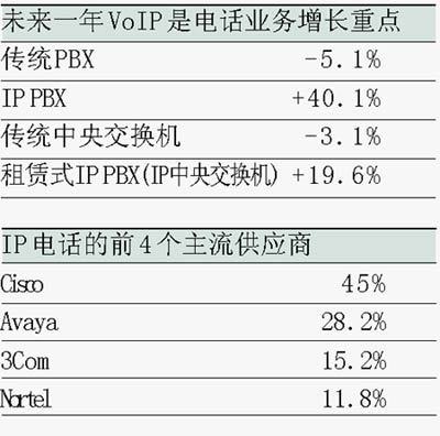 在北美,許多公司目前都在使用VoIP技術(shù)來合并語音和數(shù)據(jù)網(wǎng)絡(luò),并且還引入了許多功能非常強大的應(yīng)用,例如,在打電話時只需要在公司的目錄中點擊對方的姓名即可實現(xiàn)呼叫,而無須像過去那樣先查號再撥號。的確,VoIP已經(jīng)相當(dāng)成熟,因此各企業(yè)都可以考慮對該技術(shù)進行一些測試工作,并利用它最終替代傳統(tǒng)的電路交換系統(tǒng),Gartner集團分析師Jeff Snyder預(yù)測說,到2007年,北美地區(qū)新裝電話系統(tǒng)中有97%都將采用VoIP系統(tǒng)或VoIP/電路混合交換系統(tǒng)。
