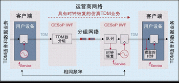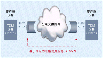 圖1:通過分組交換網(wǎng)絡(luò)實現(xiàn)的電路仿真業(yè)務(wù)。
