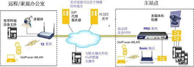 SonicWALL公司的完全VoIP解決方案為VoIP基礎(chǔ)設(shè)施提供了無與倫比的安全性,基于標(biāo)準(zhǔn)的VoIP兼容性,以及與全球大多數(shù)主要VoIP網(wǎng)關(guān)和通信設(shè)備的互操作性。