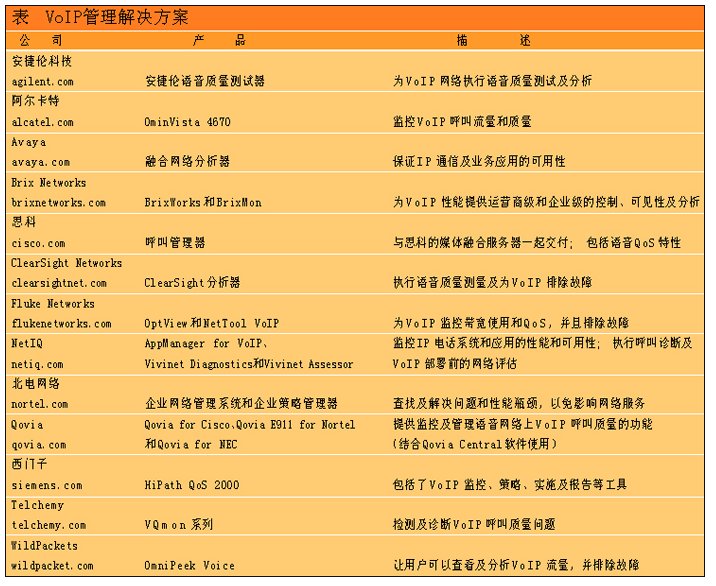 表 VoIP管理解決方案(點擊小圖看大圖)
