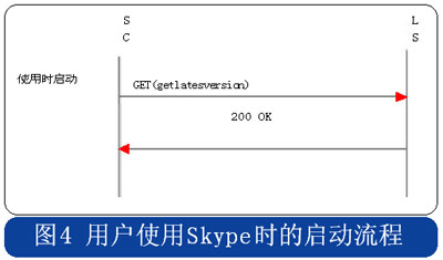 Skype的用戶終端啟動時,采用HTTP協(xié)議連接到注冊服務器,用戶初次安裝的啟動流程中攜帶“installed”的參數(shù),使用時啟動流程則在消息中攜帶“getlatestversion”參數(shù),具體流程分別見圖3和圖4。