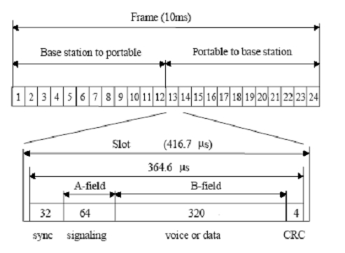 DECT協(xié)議體系與開放系統(tǒng)互連(OSI)參考模型的較低層密切相關。DECT有一個物理層,一個數據鏈路層及一個網絡層。數據鏈路層是由媒體訪問控制(MAC)層和數據鏈路控制(DLC)層組成的。