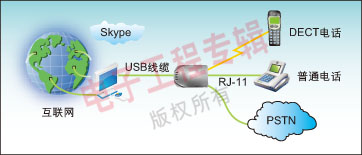 圖5:DECT+Skype數字無繩電話方案的座機部分構成