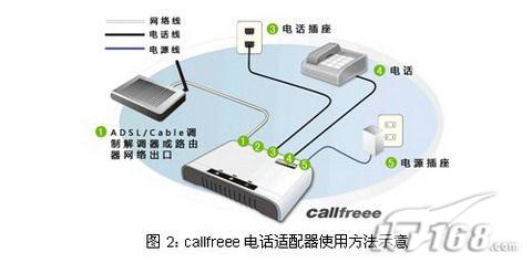 這不僅僅意味著用戶不需要高價(jià)購買設(shè)備,不需要支付任何的月租費(fèi),更重要的是用戶不需要擔(dān)心設(shè)備廠商服務(wù)質(zhì)量下降甚至中斷設(shè)備的使用。而且callfreee電話適配器配置完成以后使用方式非常簡(jiǎn)單,用戶不需要更換電話機(jī)、變更電話號(hào)碼和和撥號(hào)方式,使用方法如下圖所示: