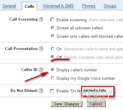 也許很多朋友嘗試不成功,原因是還需要在Google voice中設(shè)定 Display caller’s number.因?yàn)?8tel需要在電話呼入的時(shí)候識(shí)別來電顯示的。