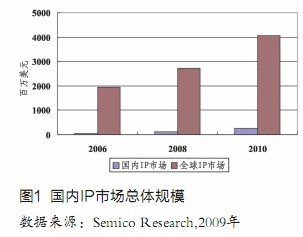 中國是全球最大的半導(dǎo)體市場之一,但是相對應(yīng)的中國集成電路IP(知識產(chǎn)權(quán))市場只有5610萬美元,僅為全球市場的2.8%,仍屬于起步階段。根據(jù)Semico Research的分析,到2010年中國IP市場將增長到2.47億美元,占全球市場的6%,年均增長率高達44.9%,遠超過全球IP市場的18.3%的增長率(見圖1)。