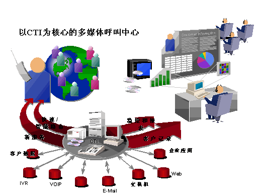 呼叫中心與互聯(lián)網(wǎng)技術(shù)的結(jié)合,意味著客戶在瀏覽某一公司的網(wǎng)頁時,如果希望就某一問題與客戶服務(wù)代表進(jìn)行討論,此時客戶并不需要主動撥打客服中心的電話號碼,然后等待轉(zhuǎn)接到空閑的業(yè)務(wù)代表,再花時間向業(yè)務(wù)代表解釋他/她的意圖。而是擁有多種與呼叫中心聯(lián)系的方式,從而將貴公司的互聯(lián)網(wǎng)客戶服務(wù)與電話客戶服務(wù)更好地結(jié)合在一起,為您的客戶提供全方位、多元化的服務(wù)。優(yōu)利公司相信,這種客戶服務(wù)代表與Internet的互動,將為客戶服務(wù)與銷售提供一個強(qiáng)有力的媒介環(huán)境。