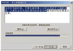 接下來,Microsoft語音識別向?qū)⑹占愕囊恍┞曇羰纠员氵m應(yīng)你的說話風(fēng)格(如圖7所示),點(diǎn)擊"下一步"按鈕。