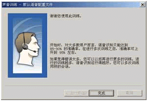 當(dāng)你15分鐘的訓(xùn)練全部結(jié)束后,將會看到如圖12所示的對話框,此時(shí)原來默認(rèn)的用戶配置文件將用剛才所收集的訓(xùn)練數(shù)據(jù)進(jìn)行更新,稍候片刻,你就會看到如圖13所示的對話框,告訴你語音訓(xùn)練已經(jīng)結(jié)束。