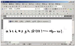 安裝成功后,你會從圖16中看到一個(gè)手寫圖標(biāo),接下來我們就可以使用手寫識別功能啦。首先,你必須在屏幕上選定書寫區(qū)域,可以是屏幕上類似于筆記本橫格紙的輸入板,也可以在屏幕上任意的位置書寫。我們可通過使用手寫輸入設(shè)備或移動鼠標(biāo)墊上的鼠標(biāo)來形成文字,從而完成書寫,手寫文字將被自動識別,并輸入到程序的插入點(diǎn)處。就像通常在紙張表面上一樣,你可以使用草書、印刷體或二者兼而有之地進(jìn)行書寫,書寫時(shí)不必每寫完一個(gè)字母后作停頓,可輸入整個(gè)單詞并在單詞之間留出空格。