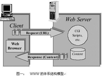 語音應(yīng)用協(xié)議的體系結(jié)構(gòu)類似于WWW的體系結(jié)構(gòu)和WAP的體系結(jié)構(gòu),圖一是WWW的體系結(jié)構(gòu):