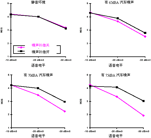 這種功能對消費者來說意味著什么呢?已經(jīng)進行了幾個研究,來確定這些功能對一般無線用戶的真正價值,以及測試他們是否確實注意到使用這些功能前后的差別。獨立地進行的Mean Opinion Score(MOS)測試顯示出:噪聲補償功能提高的語音質(zhì)量有20%的用戶能感覺出來,特別是在非常吵雜的情況下而且發(fā)自PSTN側(cè)的話音電平又比較低的時候,噪聲電平通常以忙碌的街角為準。在一個安靜的環(huán)境中用戶意識不到有任何的影響。