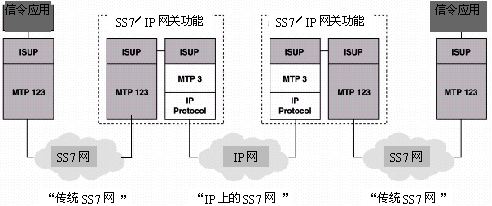 就是兩個(gè)PSTN網(wǎng)絡(luò)之間通過IP網(wǎng)絡(luò)連接起來,PSTN網(wǎng)絡(luò)間的SS7信令信息通過IP網(wǎng)透明地傳送到對(duì)方。這樣做的目的是:不管呼叫是通過基于電路的PSTN還是通過VoIP網(wǎng)絡(luò),都能向用戶提供相同的隨時(shí)隨地的接入和業(yè)務(wù)功能集。另外,通過IP網(wǎng)傳遞SS7所需要的基礎(chǔ)傳輸設(shè)備成本明顯要比傳送傳統(tǒng)SS7所需要的基礎(chǔ)傳輸設(shè)備低得多。(參考圖9)