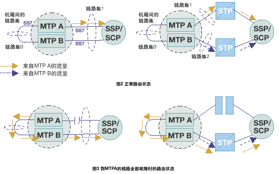 當(dāng)連接到MTP A或連接到 MTP B的所有鏈路均發(fā)生故障時,訊息通過MTP A和MTP