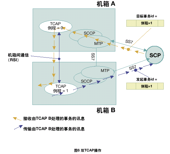 每個TCAP將所有接收的信息傳遞到同機(jī)箱中的TCAP用戶任務(wù)中。根據(jù)每一個TCAP中不同的應(yīng)用層或用戶,將TCAP層的本地應(yīng)用程序發(fā)送的傳送會話和組件原語傳遞給正確的TCAP。在雙系統(tǒng)環(huán)境中,接收訊息可以在任何MTP和SCCP層上共享;因此,一個TCAP層接收由其它TCAP處理的應(yīng)用在激活事務(wù)上的TCAP訊息是可能的。