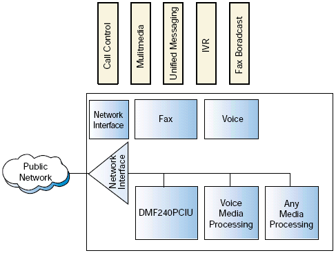 與其它網(wǎng)絡(luò)接口和媒體處理板卡結(jié)合起來(lái), DM/F240-PCIU 和 DM/F300-PCIU定位為提供面向傳真服務(wù)器和統(tǒng)一消息市場(chǎng)段的產(chǎn)品.
