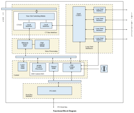 信令數(shù)據(jù)(摘機(jī)/掛機(jī)、振鈴、呼叫方ID等等)傳送到板內(nèi)控制處理器,并且通過(guò)雙端口共享RAM和主機(jī)PCI總線發(fā)送到應(yīng)用程序。