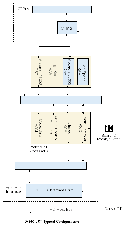 D/320-JCT板卡通過與外部網(wǎng)絡(luò)連接的CT總線接口與網(wǎng)絡(luò)接口板卡相連。DSP資源通過一個CT612模塊接收數(shù)字語音數(shù)據(jù),CT612作為到CT總線的接口。DSP基于下載到它的高速RAM中的Spring