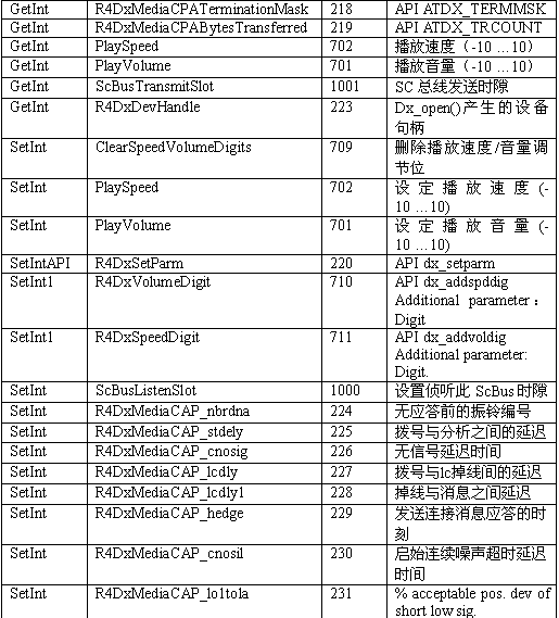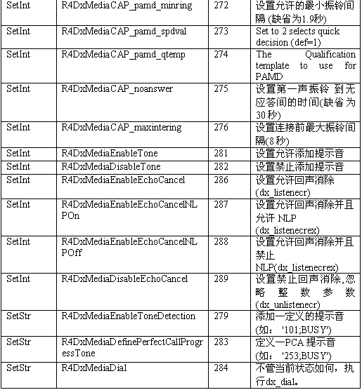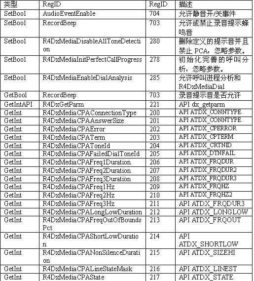 必須注意,調(diào)用API級的函數(shù)設(shè)置一個CTADE_A參數(shù)可能不只改變電路板級的參數(shù)。例如,R4DxMedia中,使用函數(shù)MediaSetBool設(shè)置REGID_R4DxMediaDisableAllToneDetection(280)為0或1來清除Dialogic提示音ID。