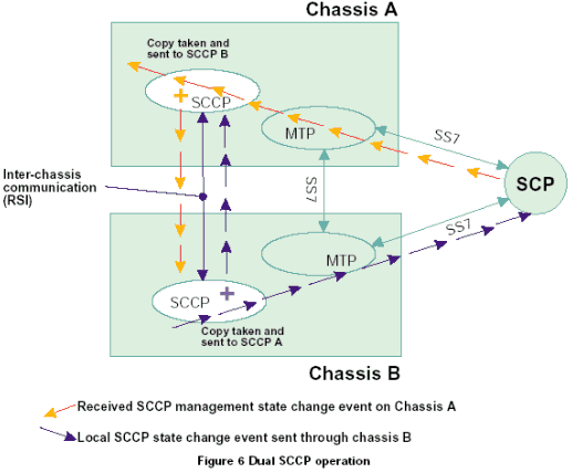 SCCP通過支持可尋址的子系統(tǒng)概念提高了消息傳遞部分(MTP)的路由能力。所有已知的本地和遠(yuǎn)端子系統(tǒng)的路由可用性(允許狀態(tài)或禁止?fàn)顟B(tài))在SCCP層中進(jìn)行管理。在一個由N個SCCP層(或多個SCCP的實例)組成作為同一節(jié)點(diǎn)編碼的系統(tǒng)中,用戶應(yīng)用程序和遠(yuǎn)端節(jié)點(diǎn)需要能夠通過任何SCCP實例交換SCCP數(shù)據(jù)消息,并且希望每個SCCP中的路由表都是相同的。為了達(dá)到這個目的,需要使用廣播機(jī)制增強(qiáng)SCCP層,這種機(jī)制將本地或遠(yuǎn)端的路由狀態(tài)的任何改變發(fā)送到廣播任務(wù)。廣播任務(wù)負(fù)責(zé)將路由變化傳送到N-1(其他)SCCP實例。在雙系統(tǒng)中,廣播任務(wù)只是另一個SCCP層,這兩層使用基于消息的API進(jìn)行通信。在一個雙機(jī)箱/子機(jī)架環(huán)境中,這些消息可以由RSI和TCP/IP組合來傳遞。