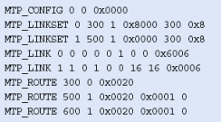 注意,這些不包括任何設(shè)置或定義信令板卡的命令,應(yīng)該象定義標準的單系統(tǒng)一樣定義。MTP_ROUTE <up_enable>參數(shù)為ISUP設(shè)置,在上例中用戶部分SI=5。